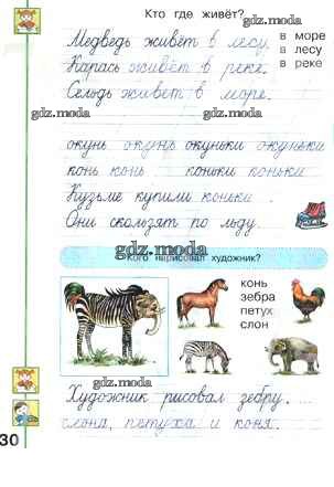 ГДЗ решение к заданию № 30 Русский язык 1 класс прописи Мой алфавит Климанова Л.Ф. Просвещение 2021 Часть 1, Часть 2 ФГОС бесплатно на гдз.мода!