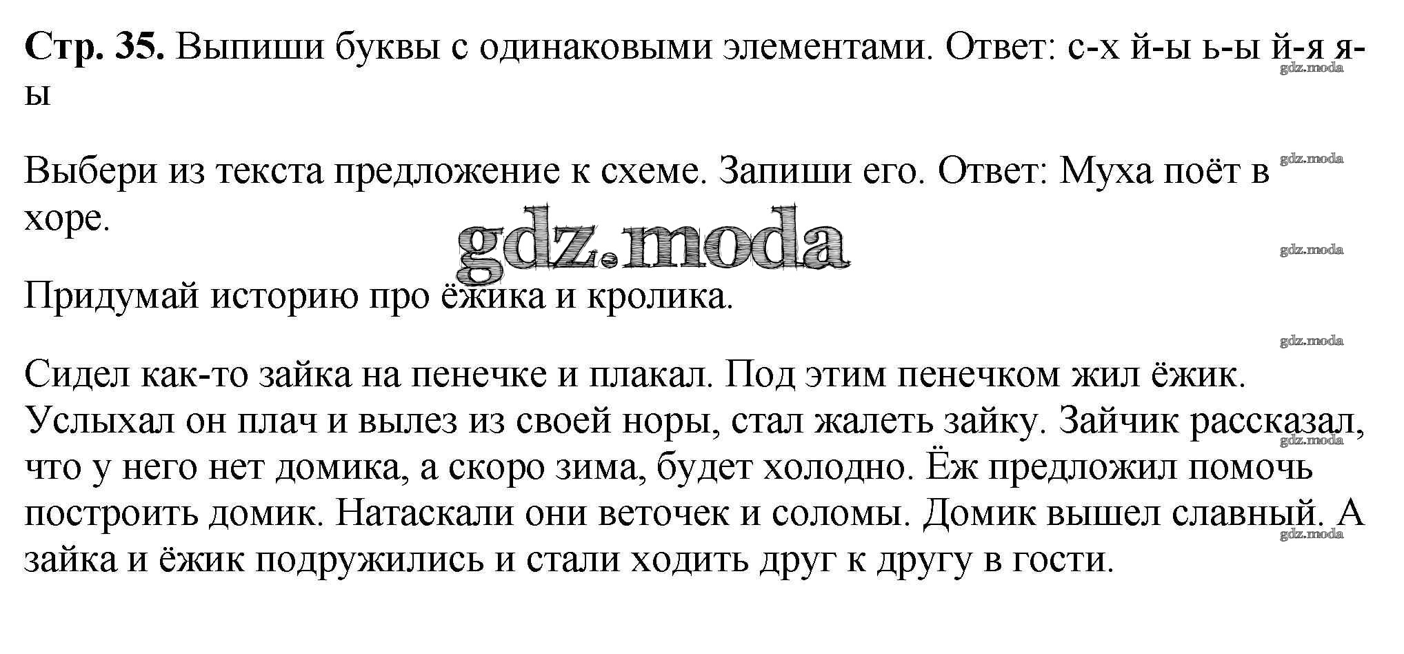 ГДЗ решение к заданию № 35 Русский язык 1 класс прописи Мой алфавит Климанова Л.Ф. Просвещение 2021 Часть 1, Часть 2 ФГОС бесплатно на гдз.мода!