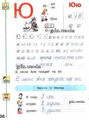 ГДЗ решение к заданию № 36 Русский язык 1 класс прописи Мой алфавит Климанова Л.Ф. Просвещение 2021 Часть 1, Часть 2 ФГОС бесплатно на гдз.мода!