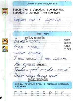 ГДЗ решение к заданию № 6 Русский язык 1 класс прописи Мой алфавит Климанова Л.Ф. Просвещение 2021 Часть 1, Часть 2 ФГОС бесплатно на гдз.мода!