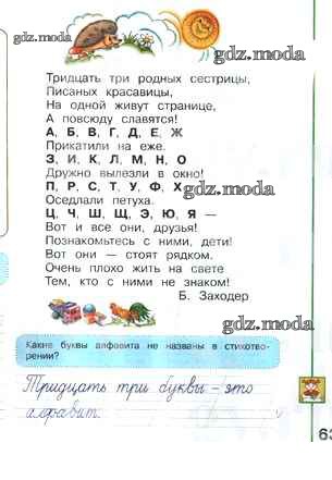 ГДЗ решение к заданию № 63 Русский язык 1 класс прописи Мой алфавит Климанова Л.Ф. Просвещение 2021 Часть 1, Часть 2 ФГОС бесплатно на гдз.мода!