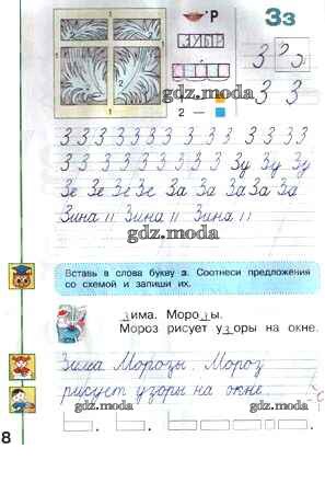 ГДЗ решение к заданию № 8 Русский язык 1 класс прописи Мой алфавит Климанова Л.Ф. Просвещение 2021 Часть 1, Часть 2 ФГОС бесплатно на гдз.мода!