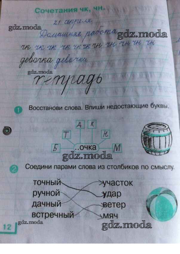 ГДЗ решение к заданию № 12 Русский язык 1 класс рабочая тетрадь Андрианова Т.М. Дрофа 2017 ФГОС бесплатно на гдз.мода!