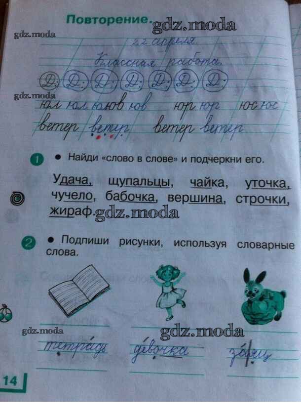 ГДЗ решение к заданию № 14 Русский язык 1 класс рабочая тетрадь Андрианова Т.М. Дрофа 2017 ФГОС бесплатно на гдз.мода!