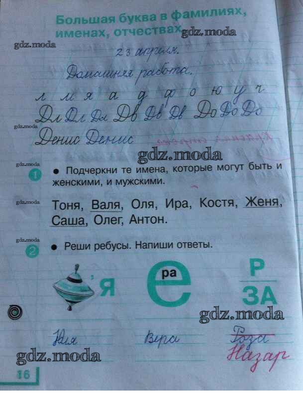 ГДЗ решение к заданию № 16 Русский язык 1 класс рабочая тетрадь Андрианова Т.М. Дрофа 2017 ФГОС бесплатно на гдз.мода!
