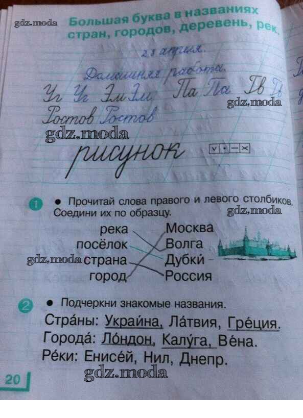 ГДЗ решение к заданию № 20 Русский язык 1 класс рабочая тетрадь Андрианова Т.М. Дрофа 2017 ФГОС бесплатно на гдз.мода!