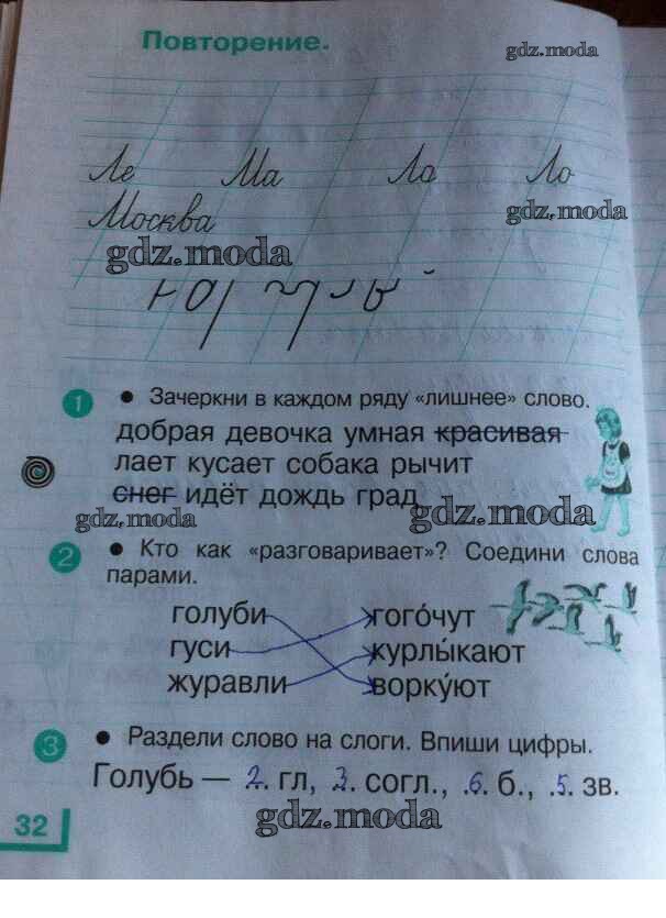 ГДЗ решение к заданию № 32 Русский язык 1 класс рабочая тетрадь Андрианова Т.М. Дрофа 2017 ФГОС бесплатно на гдз.мода!