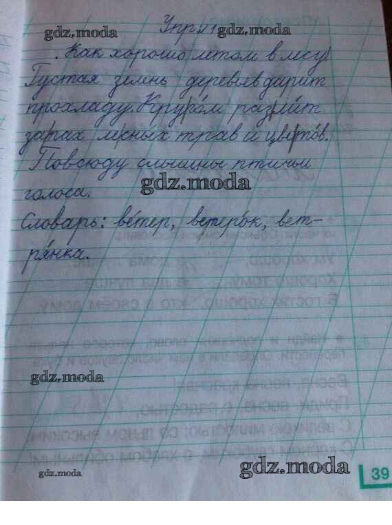 ГДЗ решение к заданию № 39 Русский язык 1 класс рабочая тетрадь Андрианова Т.М. Дрофа 2017 ФГОС бесплатно на гдз.мода!