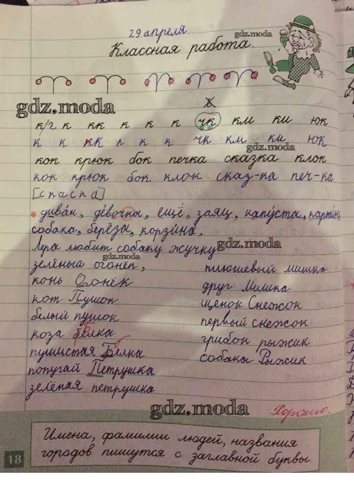 ГДЗ решение к заданию № 18 Русский язык 1 класс рабочая тетрадь Бунеева Е.В. Баласс 2012 ФГОС бесплатно на гдз.мода!
