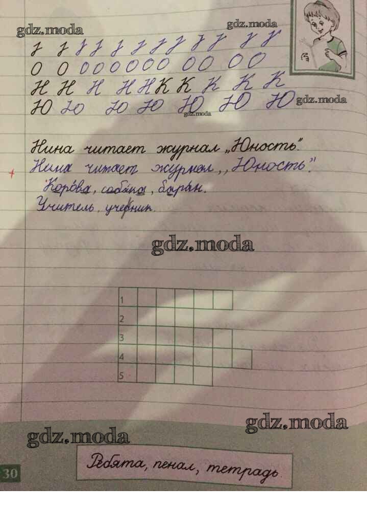 ГДЗ решение к заданию № 30 Русский язык 1 класс рабочая тетрадь Бунеева Е.В. Баласс 2012 ФГОС бесплатно на гдз.мода!