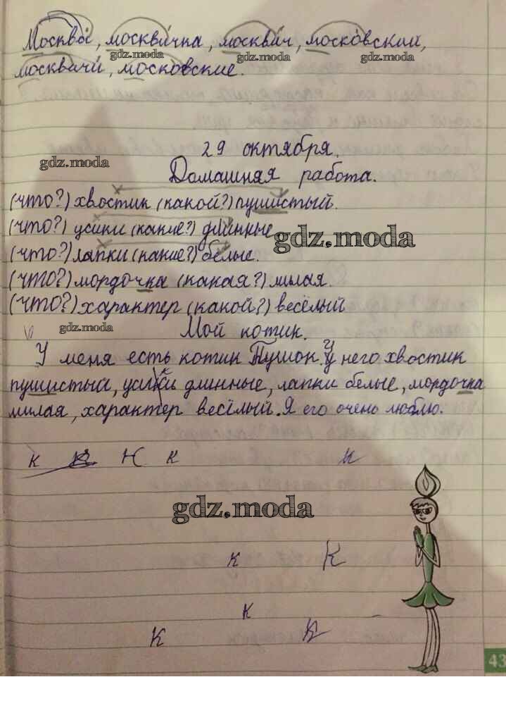 ОТВЕТ на задание № 43 Рабочая тетрадь по Русскому языку 1 класс Бунеева Школа 2100