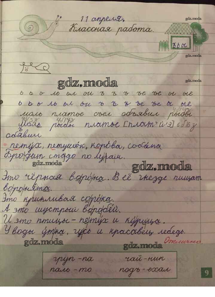 ГДЗ решение к заданию № 9 Русский язык 1 класс рабочая тетрадь Бунеева Е.В. Баласс 2012 ФГОС бесплатно на гдз.мода!