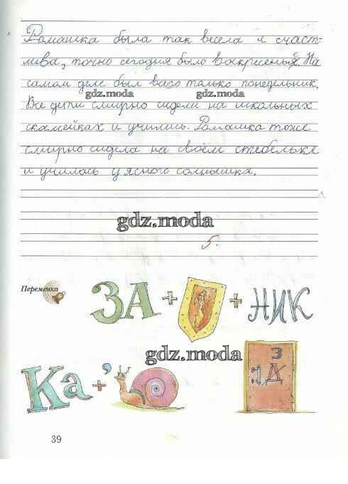 ГДЗ решение к заданию № 39 Русский язык 1 класс рабочая тетрадь Иванов С.В. Вентана-граф 2016 Часть 1, Часть 2 ФГОС бесплатно на гдз.мода!