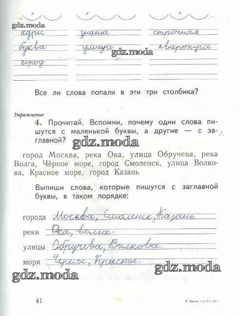 ГДЗ решение к заданию № 41 Русский язык 1 класс рабочая тетрадь Иванов С.В. Вентана-граф 2016 Часть 1, Часть 2 ФГОС бесплатно на гдз.мода!