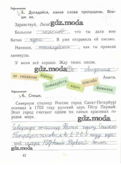 ГДЗ решение к заданию № 42 Русский язык 1 класс рабочая тетрадь Иванов С.В. Вентана-граф 2016 Часть 1, Часть 2 ФГОС бесплатно на гдз.мода!