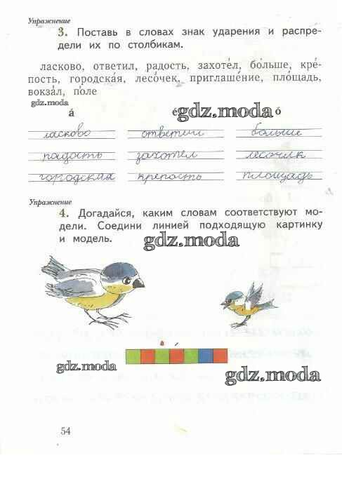 ГДЗ решение к заданию № 54 Русский язык 1 класс рабочая тетрадь Иванов С.В. Вентана-граф 2016 Часть 1, Часть 2 ФГОС бесплатно на гдз.мода!