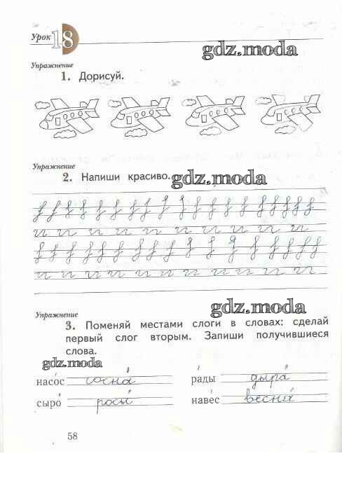 ГДЗ решение к заданию № 58 Русский язык 1 класс рабочая тетрадь Иванов С.В. Вентана-граф 2016 Часть 1, Часть 2 ФГОС бесплатно на гдз.мода!
