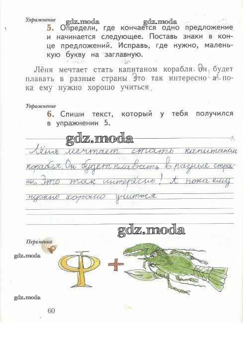 ГДЗ решение к заданию № 60 Русский язык 1 класс рабочая тетрадь Иванов С.В. Вентана-граф 2016 Часть 1, Часть 2 ФГОС бесплатно на гдз.мода!