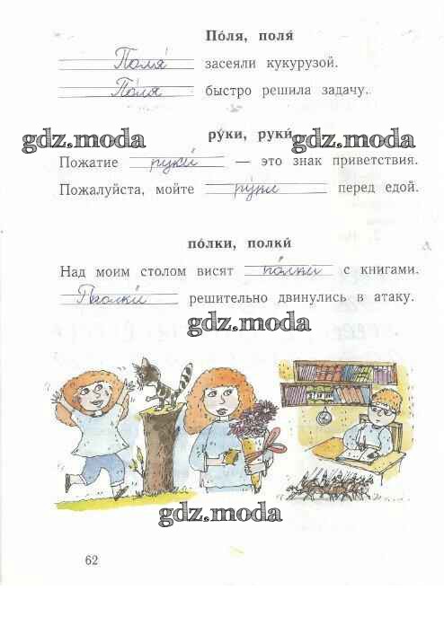 ГДЗ решение к заданию № 62 Русский язык 1 класс рабочая тетрадь Иванов С.В. Вентана-граф 2016 Часть 1, Часть 2 ФГОС бесплатно на гдз.мода!