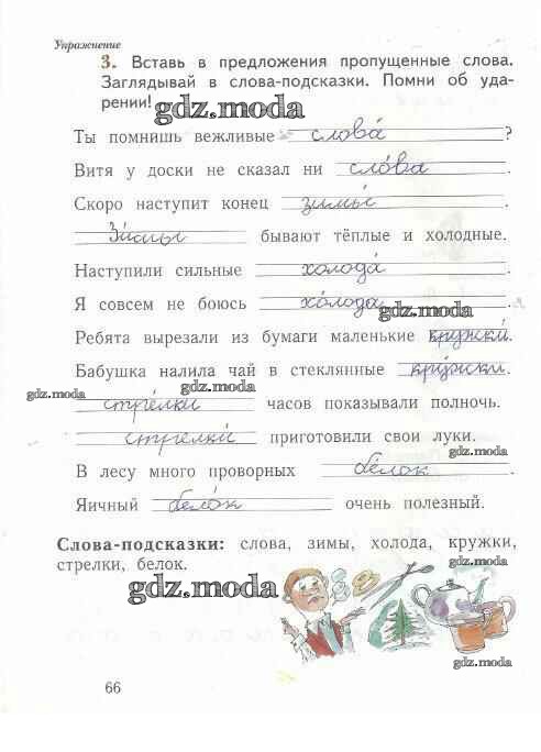 ГДЗ решение к заданию № 66 Русский язык 1 класс рабочая тетрадь Иванов С.В. Вентана-граф 2016 Часть 1, Часть 2 ФГОС бесплатно на гдз.мода!