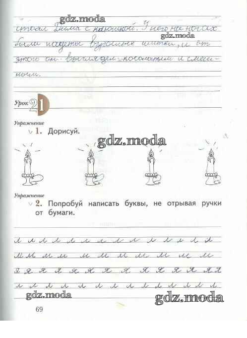 ГДЗ решение к заданию № 69 Русский язык 1 класс рабочая тетрадь Иванов С.В. Вентана-граф 2016 Часть 1, Часть 2 ФГОС бесплатно на гдз.мода!