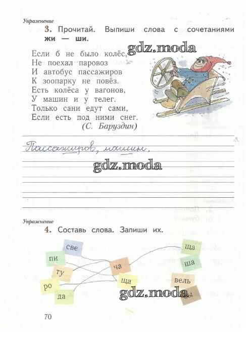 ГДЗ решение к заданию № 70 Русский язык 1 класс рабочая тетрадь Иванов С.В. Вентана-граф 2016 Часть 1, Часть 2 ФГОС бесплатно на гдз.мода!