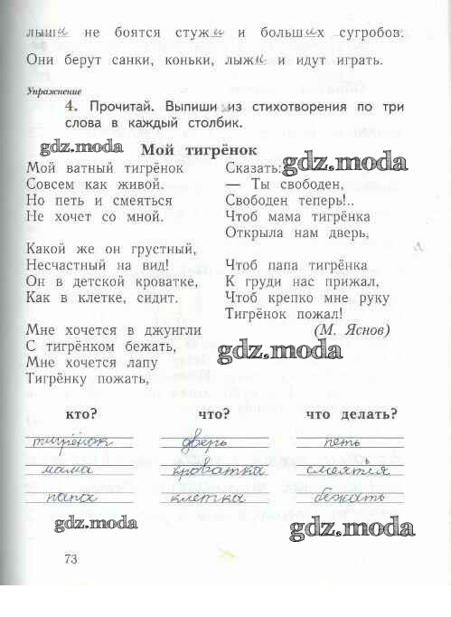 ГДЗ решение к заданию № 73 Русский язык 1 класс рабочая тетрадь Иванов С.В. Вентана-граф 2016 Часть 1, Часть 2 ФГОС бесплатно на гдз.мода!