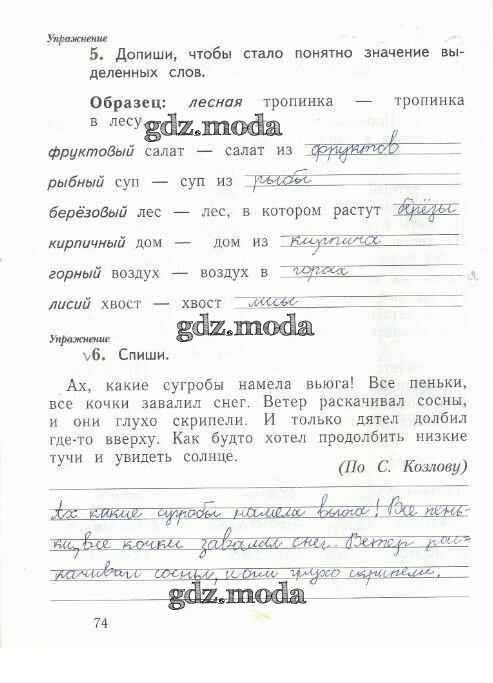 ГДЗ решение к заданию № 74 Русский язык 1 класс рабочая тетрадь Иванов С.В. Вентана-граф 2016 Часть 1, Часть 2 ФГОС бесплатно на гдз.мода!