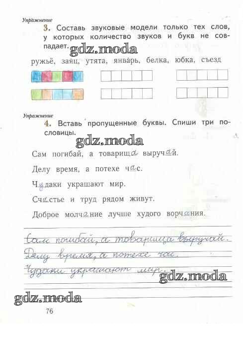 ГДЗ решение к заданию № 76 Русский язык 1 класс рабочая тетрадь Иванов С.В. Вентана-граф 2016 Часть 1, Часть 2 ФГОС бесплатно на гдз.мода!