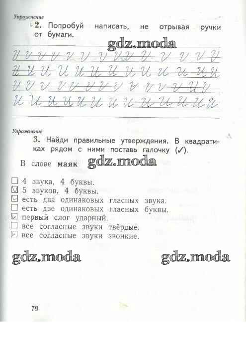 ГДЗ решение к заданию № 79 Русский язык 1 класс рабочая тетрадь Иванов С.В. Вентана-граф 2016 Часть 1, Часть 2 ФГОС бесплатно на гдз.мода!