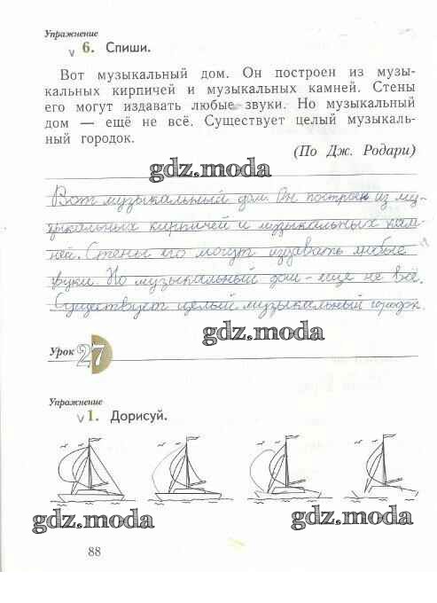 ГДЗ решение к заданию № 88 Русский язык 1 класс рабочая тетрадь Иванов С.В. Вентана-граф 2016 Часть 1, Часть 2 ФГОС бесплатно на гдз.мода!