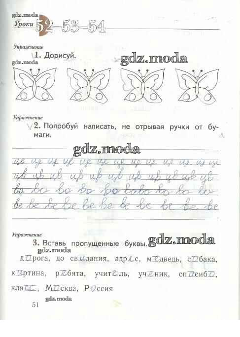 ГДЗ решение к заданию № 51 Русский язык 1 класс рабочая тетрадь Иванов С.В. Вентана-граф 2016 Часть 1, Часть 2 ФГОС бесплатно на гдз.мода!