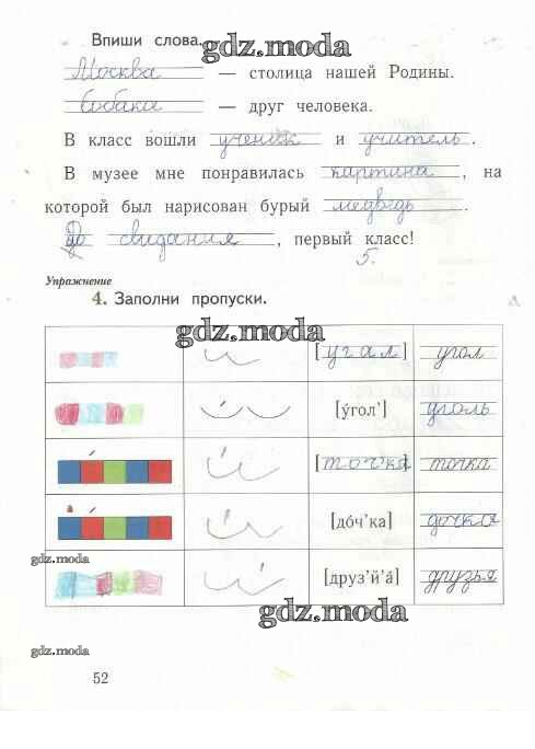 ГДЗ решение к заданию № 52 Русский язык 1 класс рабочая тетрадь Иванов С.В. Вентана-граф 2016 Часть 1, Часть 2 ФГОС бесплатно на гдз.мода!
