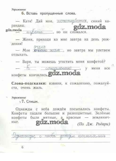 ГДЗ решение к заданию № 6 Русский язык 1 класс рабочая тетрадь Иванов С.В. Вентана-граф 2016 Часть 1, Часть 2 ФГОС бесплатно на гдз.мода!