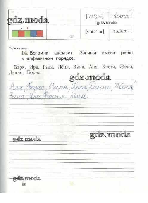 ГДЗ решение к заданию № 69 Русский язык 1 класс рабочая тетрадь Иванов С.В. Вентана-граф 2016 Часть 1, Часть 2 ФГОС бесплатно на гдз.мода!
