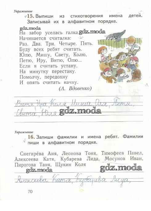 ГДЗ решение к заданию № 70 Русский язык 1 класс рабочая тетрадь Иванов С.В. Вентана-граф 2016 Часть 1, Часть 2 ФГОС бесплатно на гдз.мода!