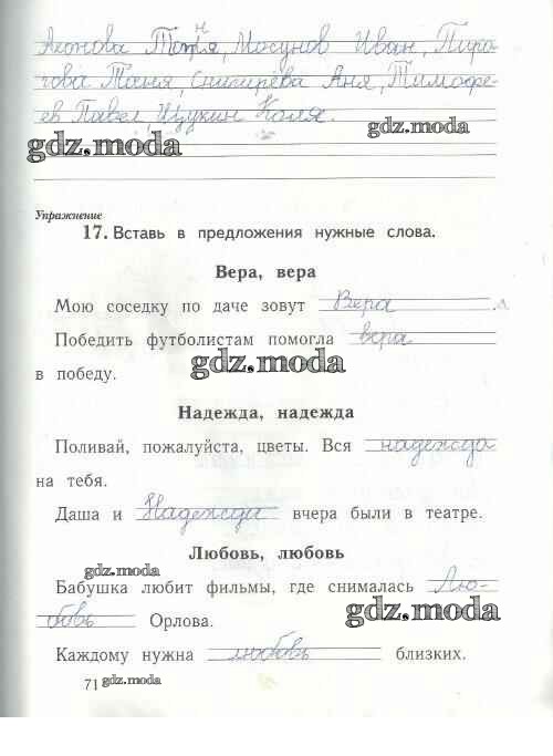 ГДЗ решение к заданию № 71 Русский язык 1 класс рабочая тетрадь Иванов С.В. Вентана-граф 2016 Часть 1, Часть 2 ФГОС бесплатно на гдз.мода!