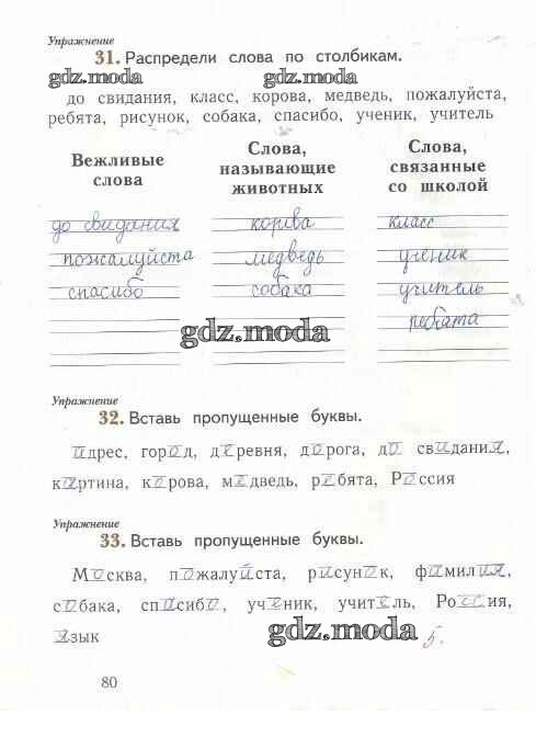 ГДЗ решение к заданию № 80 Русский язык 1 класс рабочая тетрадь Иванов С.В. Вентана-граф 2016 Часть 1, Часть 2 ФГОС бесплатно на гдз.мода!