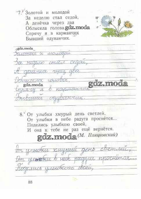 ГДЗ решение к заданию № 88 Русский язык 1 класс рабочая тетрадь Иванов С.В. Вентана-граф 2016 Часть 1, Часть 2 ФГОС бесплатно на гдз.мода!
