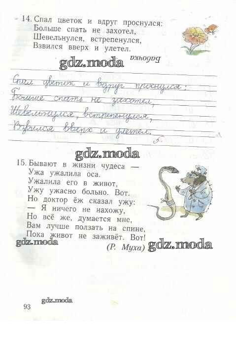 ГДЗ решение к заданию № 93 Русский язык 1 класс рабочая тетрадь Иванов С.В. Вентана-граф 2016 Часть 1, Часть 2 ФГОС бесплатно на гдз.мода!