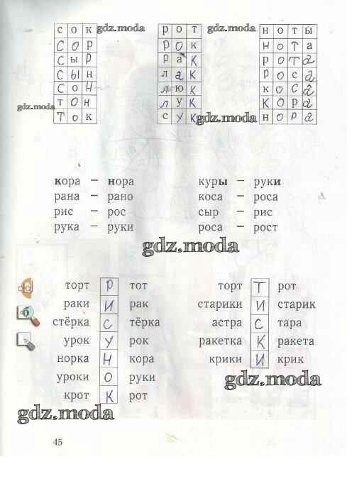 ГДЗ решение к заданию № 45 Я учусь писать и читать 1 класс рабочая тетрадь Кузнецова М.И. Вентана-граф 2020 ФГОС бесплатно на гдз.мода!