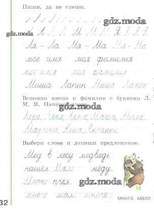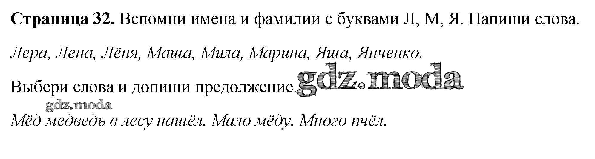 ГДЗ решение к заданию № 32 Русский язык 1 класс рабочая тетрадь Пиши красиво Климанова Л.Ф. Просвещение 2021 ФГОС бесплатно на гдз.мода!