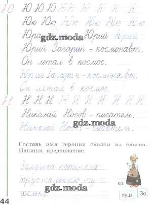 ГДЗ решение к заданию № 44 Русский язык 1 класс рабочая тетрадь Пиши красиво Климанова Л.Ф. Просвещение 2021 ФГОС бесплатно на гдз.мода!