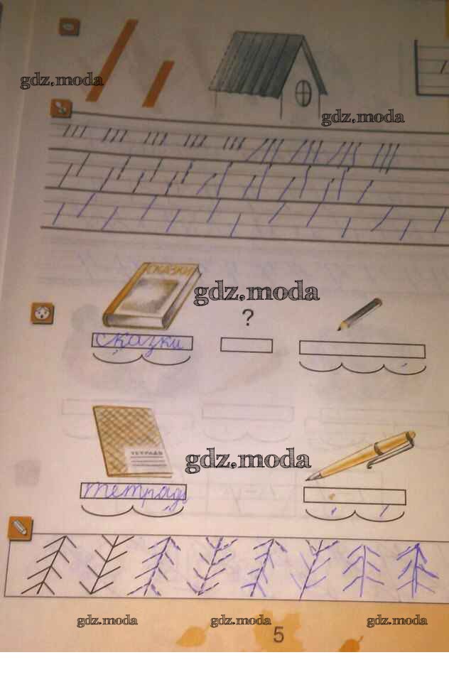 ГДЗ решение к заданию № 5 Русский язык 1 класс тетрадь по письму Агаркова Н.Г. Вита-Пресс 2019 Часть 1, Часть 2, Часть 3, Часть 4 ФГОС бесплатно на гдз.мода!