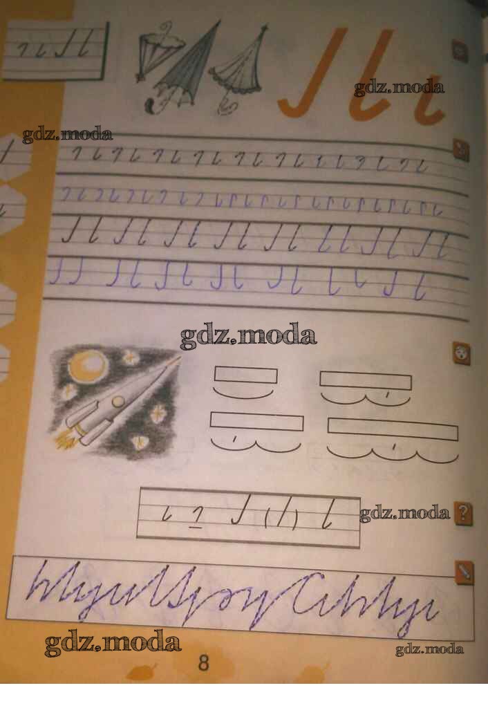 ГДЗ решение к заданию № 8 Русский язык 1 класс тетрадь по письму Агаркова Н.Г. Вита-Пресс 2019 Часть 1, Часть 2, Часть 3, Часть 4 ФГОС бесплатно на гдз.мода!