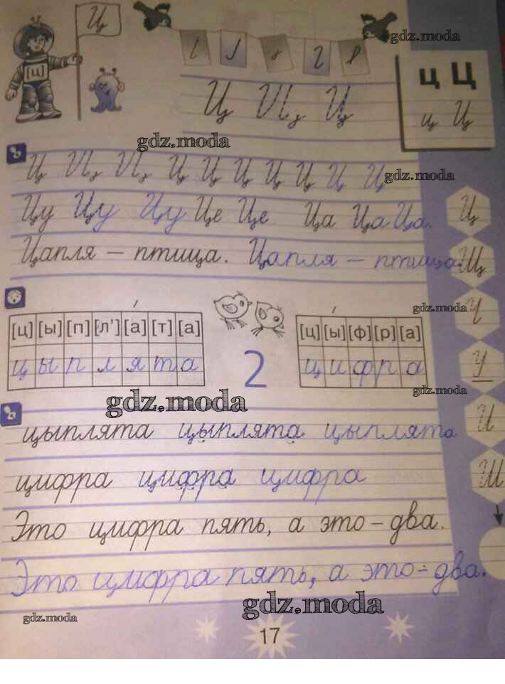ГДЗ решение к заданию № 17 Русский язык 1 класс тетрадь по письму Агаркова Н.Г. Вита-Пресс 2019 Часть 1, Часть 2, Часть 3, Часть 4 ФГОС бесплатно на гдз.мода!