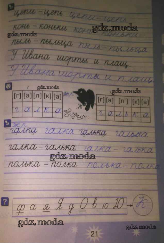 ГДЗ решение к заданию № 21 Русский язык 1 класс тетрадь по письму Агаркова Н.Г. Вита-Пресс 2019 Часть 1, Часть 2, Часть 3, Часть 4 ФГОС бесплатно на гдз.мода!