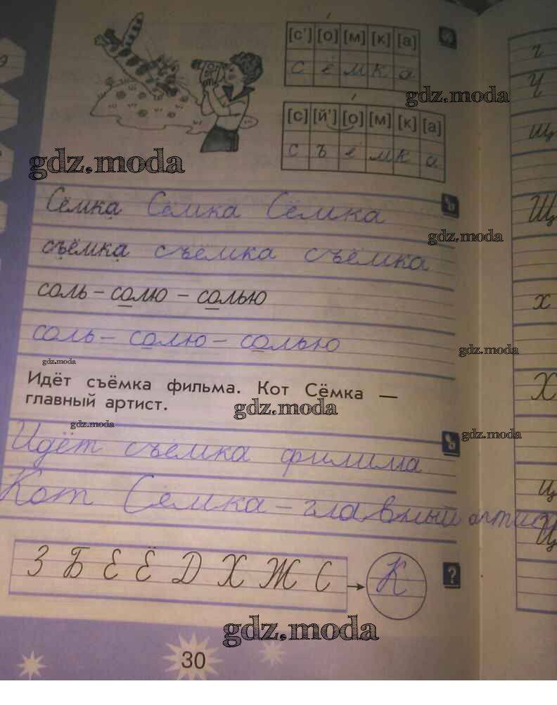 ГДЗ решение к заданию № 30 Русский язык 1 класс тетрадь по письму Агаркова Н.Г. Вита-Пресс 2019 Часть 1, Часть 2, Часть 3, Часть 4 ФГОС бесплатно на гдз.мода!