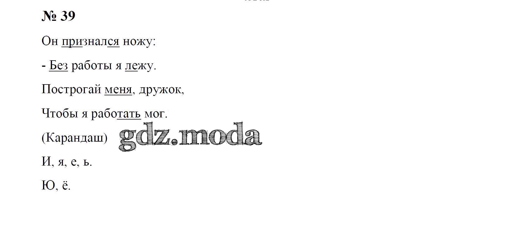 ГДЗ решение к заданию № 39 Русский язык 1 класс рабочая тетрадь Рамзаева Т.Г. Просвещение 2019 бесплатно на гдз.мода!