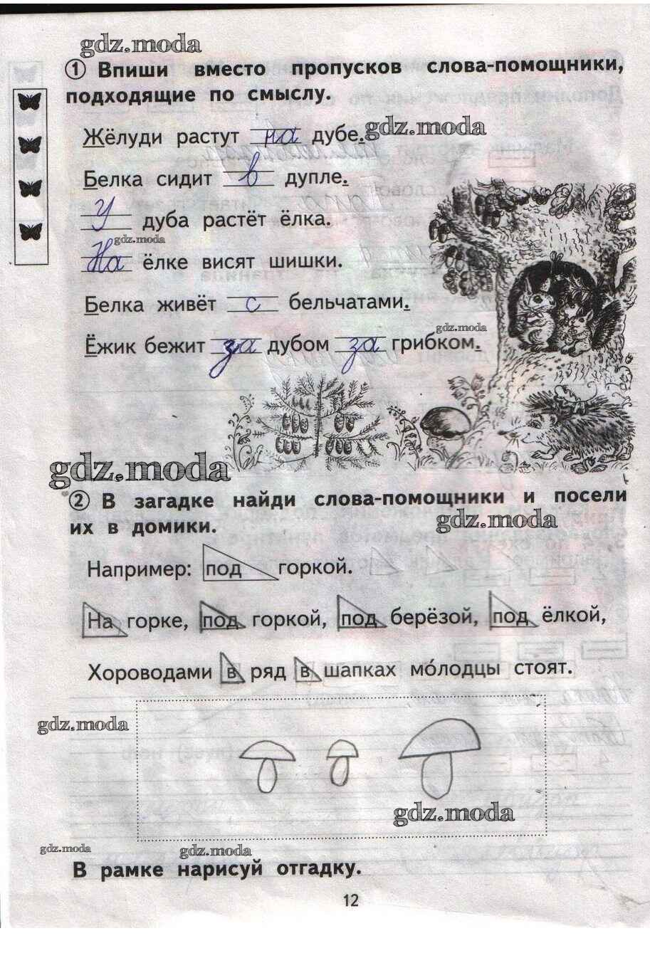 ОТВЕТ на задание № 12 Тетрадь для самостоятельной работы по Русскому языку 1 класс Гольфман Перспективная начальная школа